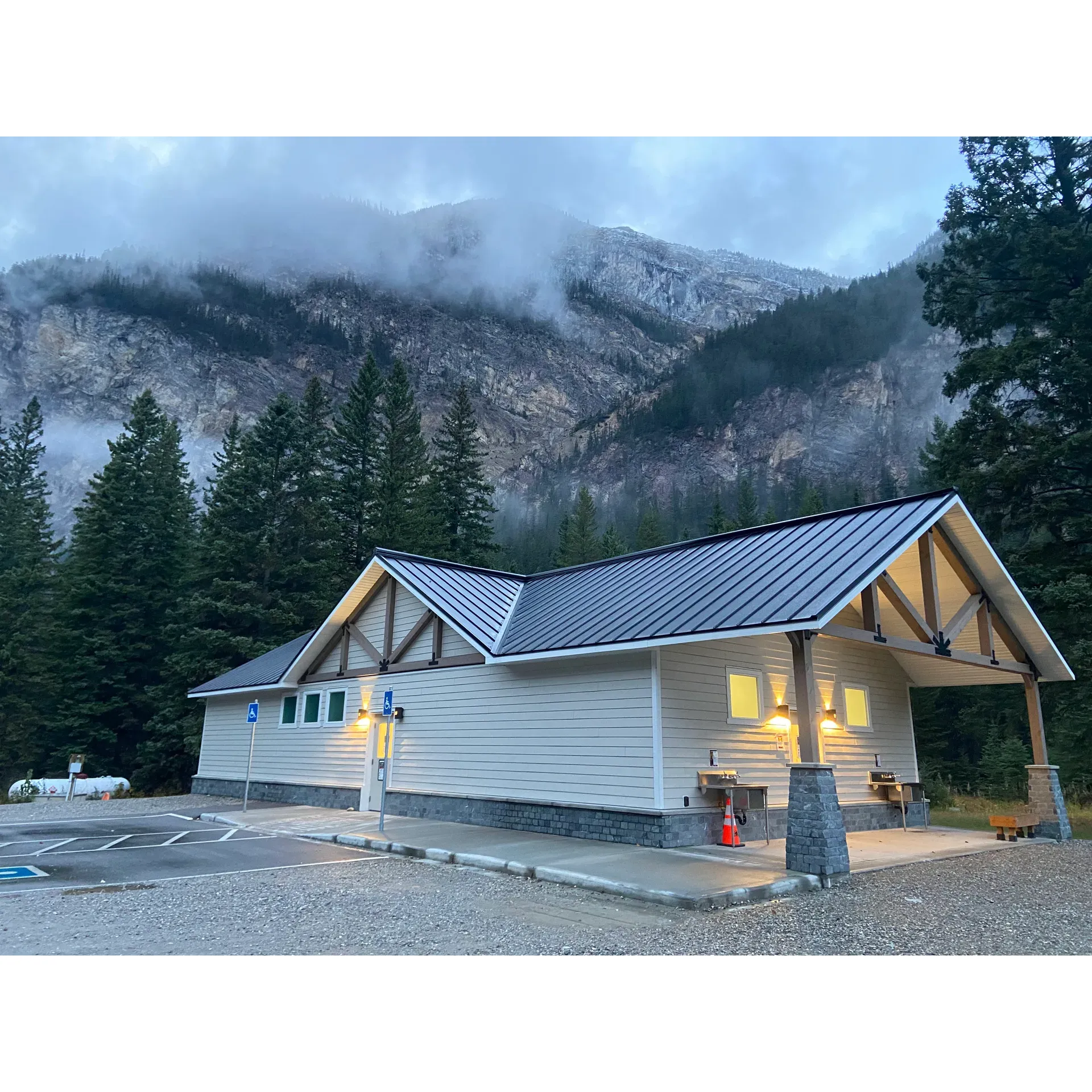 Families visiting Kicking Horse Campground will appreciate the thoughtfully provided amenities, including a playground that keeps children entertained, and communal areas such as the dishwashing station enhance the practical aspects of camping. The addition of bear food storage lockers is a responsible nod to wildlife safety and guest comfort.