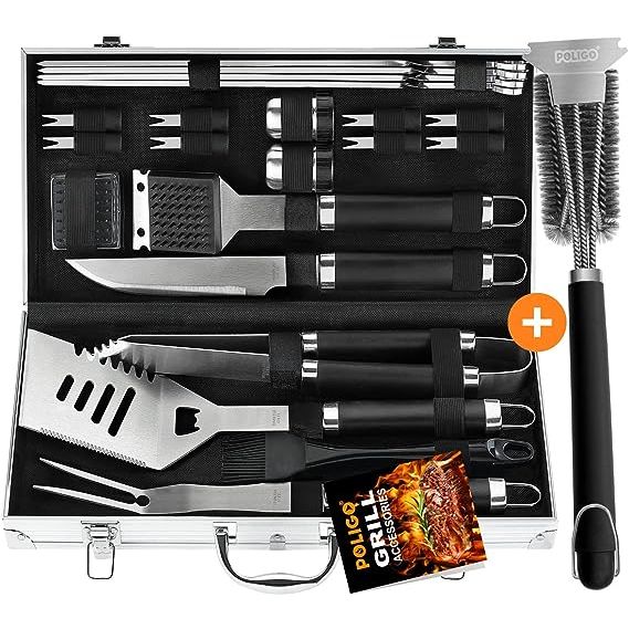 POLIGO 22PCS Grilling Package with Aluminum Case and Essential BBQ Tools - Stainless Steel Utensils Perfect for Father's Day Gifts