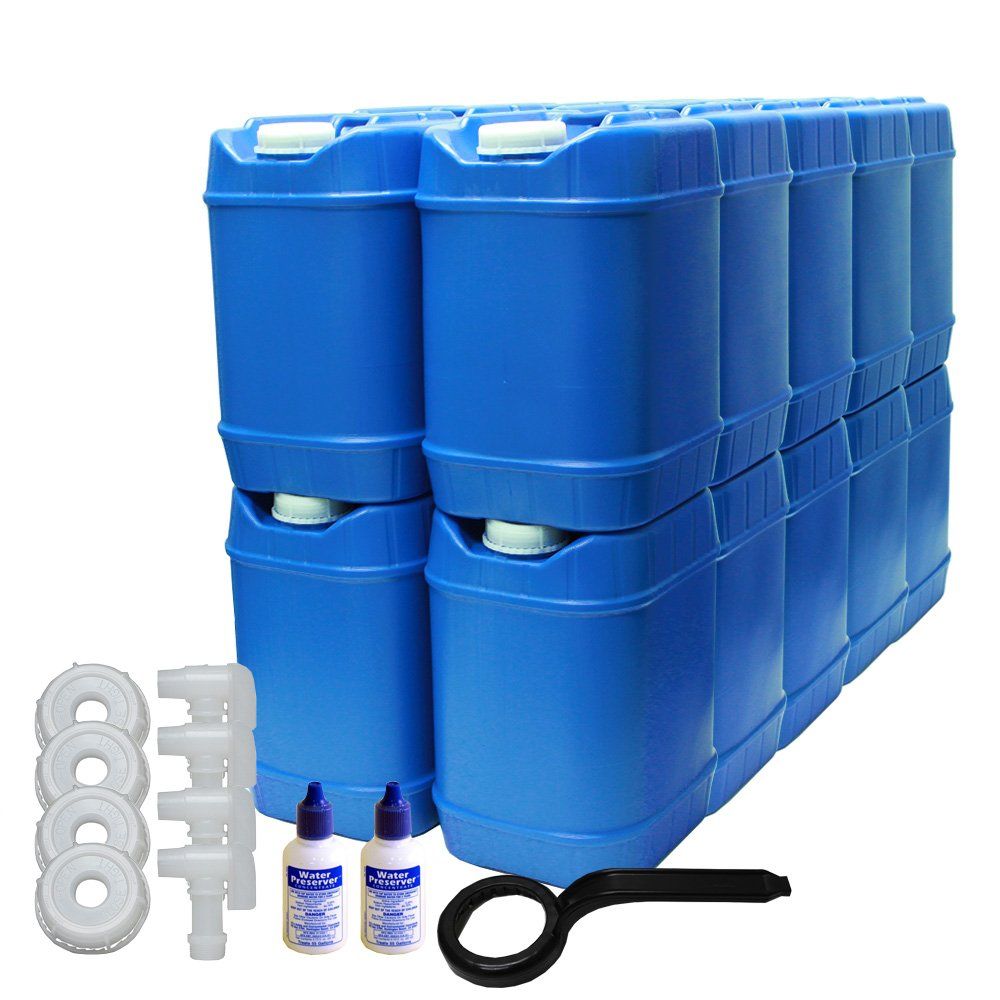In case of emergencies, it is recommended to have 1/2 gallon of water per person per day. With this kit, you'll have enough water to last you for 40 days. That's a total of 20 gallons, provided by the four 5-gallon containers included in the kit. The water preserver that comes with it ensures that your water stays safe for up to 5 years, unlike traditional storage methods that only preserve the water for 6-12 months. With this kit, you can have peace of mind knowing that you and your loved ones are well-prepared for any emergency.