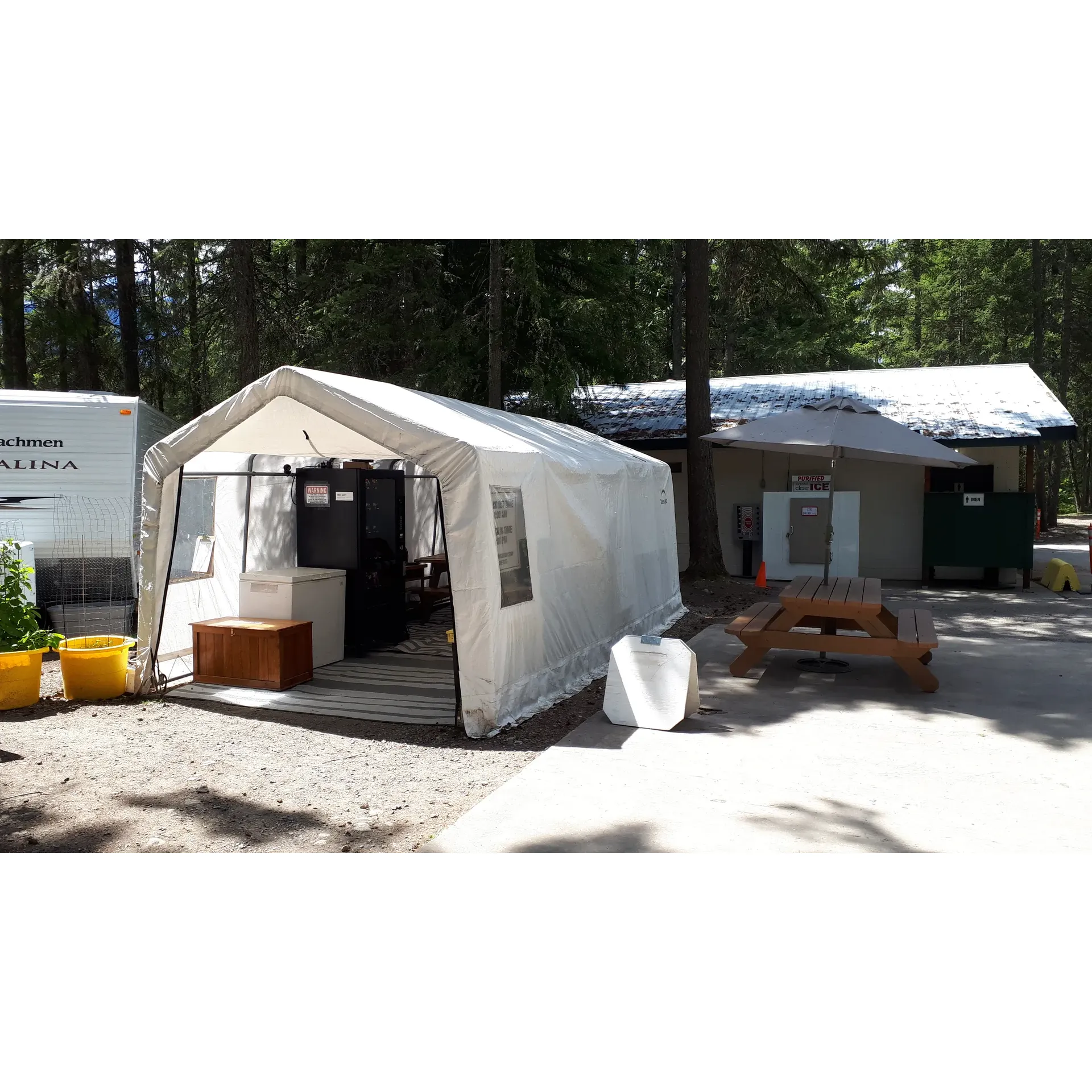 Amenity-wise, the campground stands out with its impeccably clean washrooms and hot showers, both designed to refresh and rejuvenate after a long day of exploration or leisure. The user-friendly, hot push-button showers, along with a convenient wash-up station for dishes, add a touch of comfort to the rustic camping experience. Furthermore, a playground in the adjacent park presents the perfect venue for younger guests to find entertainment and joy.