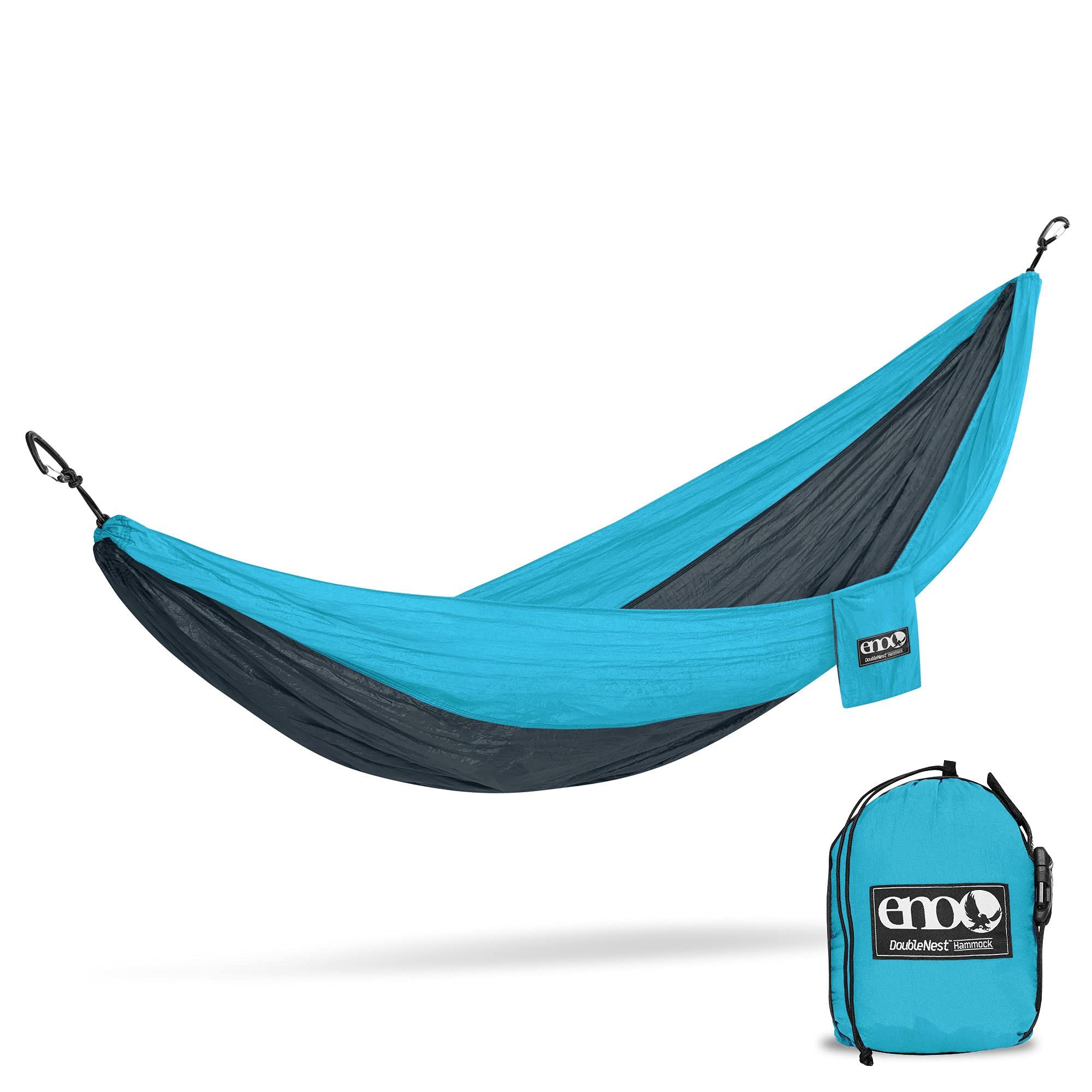 The DoubleNest reigns supreme. It's our bread-and-butter. It's your all-access pass to relaxation. Big enough for two and palatial for one, the DoubleNest still manages to stuff easily into its attached compression sack. Take it anywhere, set it up in seconds flat, lay back and oh, did you want to join me? I've got room for one more! Weight: 19 Ounces; Folded Dimensions: (Dia x L) 4" x 5"; Unfolded Dimensions: (L x W) 9' 4" x 6' 2".
