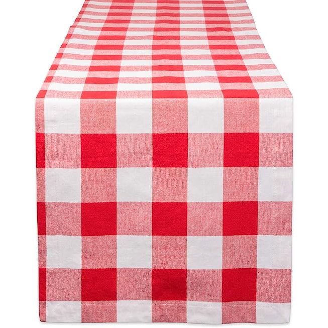 DII Buffalo Check Collection, Classic Farmhouse Table Runner, 14x72, Red & White