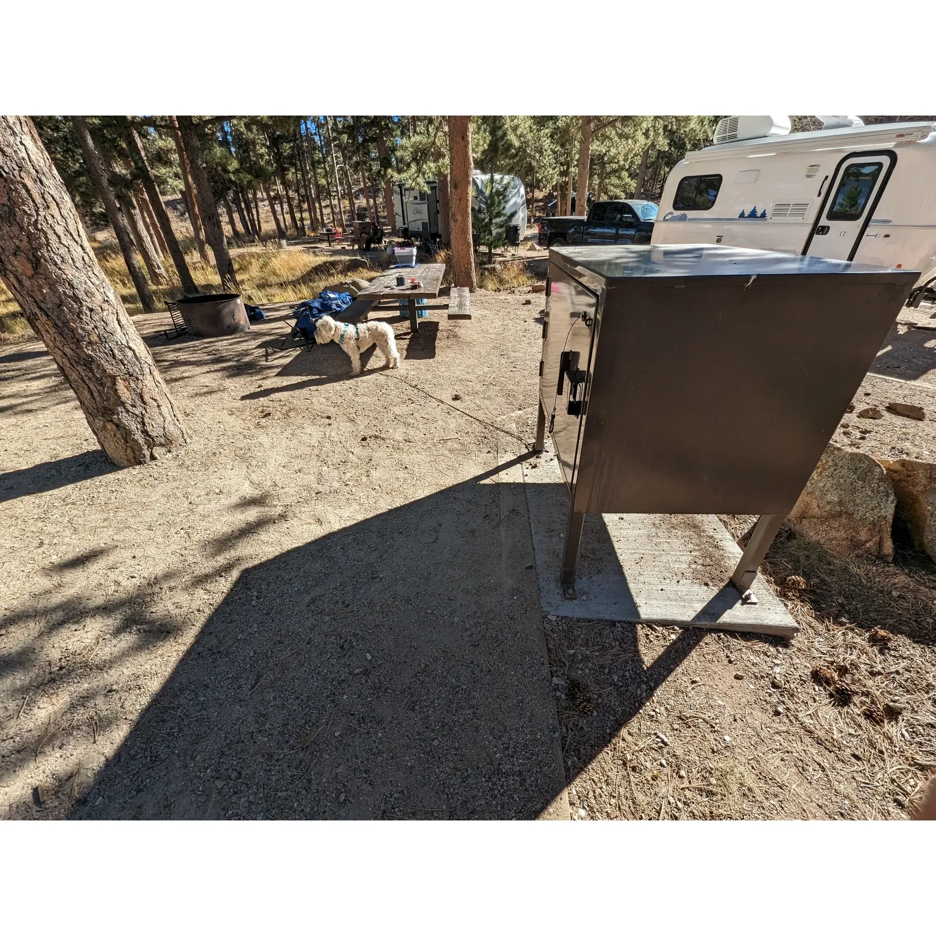 Connectivity isn't a concern here; excellent cellular service across the campground keeps you connected and makes remote work or staying in touch hassle-free. While rustic in charm, the sites cater to modern needs, offering electric hookups and convenient amenities like campfire rings, picnic tables, and secure bear boxes, ensuring a worry-free outdoor adventure.