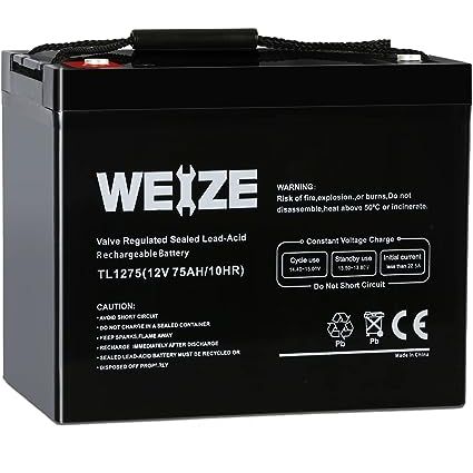 Weize 12V 75AH Extended Durability Battery for Wayne ESP25 WSS30V Backup Sump Pump, Trolling Motor, Solar System, Mobility Wheelchair, General Applications