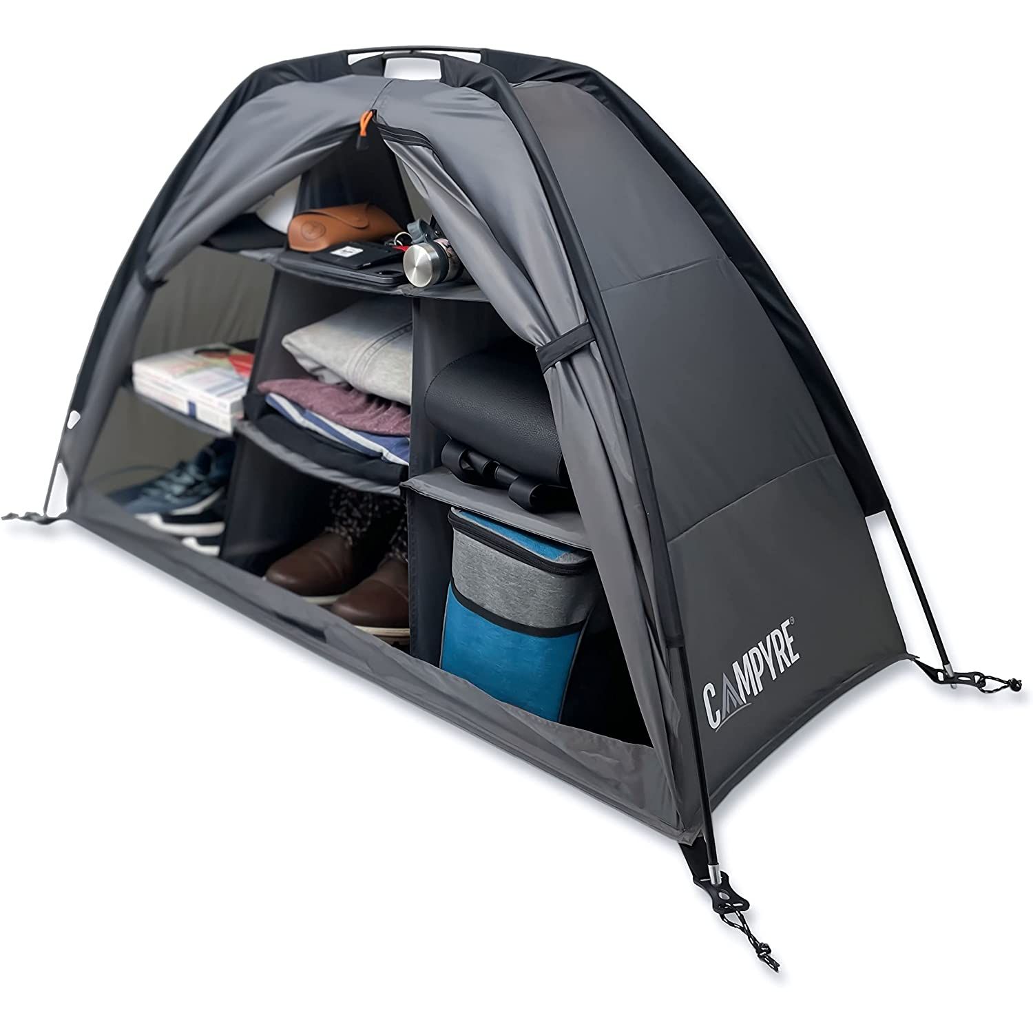 CAMPYRE - Compact Camping Organizer with Zippered Flap, 9-Shelf Storage. Ideal for Tent, RV, or any Outdoor Gear Organization (Patented - Licensed)