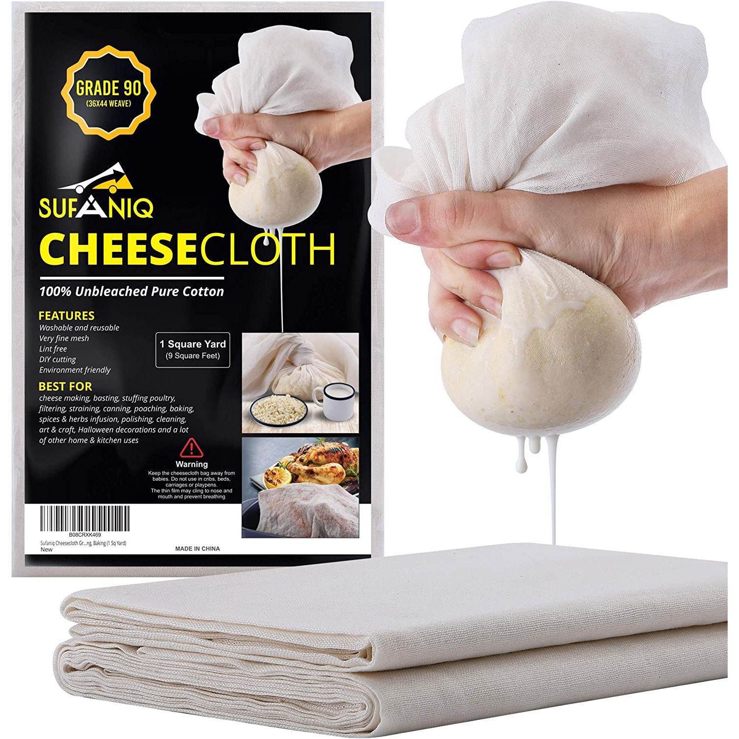 Not only is Sufaniq's Grade-90 cheesecloth highly durable, but it is also reusable, saving you from the hassle of constantly buying new ones. With its higher thread count, it resists wear and tear and serves you for a long time. And if you ever face any issues or have any queries, our dedicated customer support team is available 24/7 to provide you with the best buying experience possible. So, embrace the chef within you and elevate your cooking game with Sufaniq Food Grade Reusable Cheesecloth.