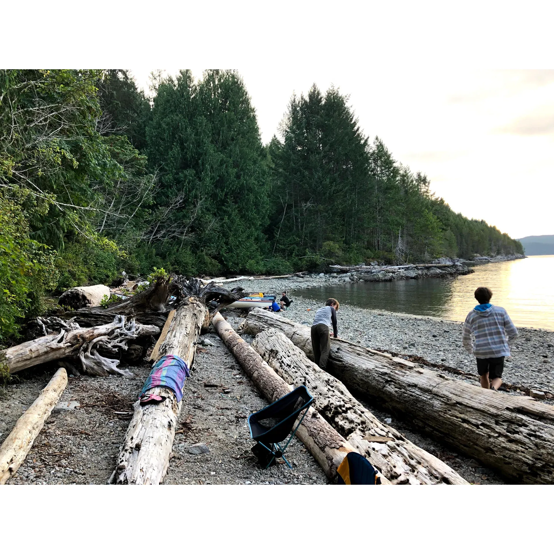 The campground's long, rocky beach is a haven for kayakers, making the task of storing watercrafts a breeze – an upgrade from neighboring sites. Further enhancing the camping experience, Feather Cove offers thoughtfully designed tent platforms, strategically placed to maximize your connection with nature. Those situated on the west end offer a secluded environment, shrouded in shade, while platforms on the northeast promise ample sunlight and enchanting views of the Sound, perfect for those wishing to bask in the area's serene beauty.