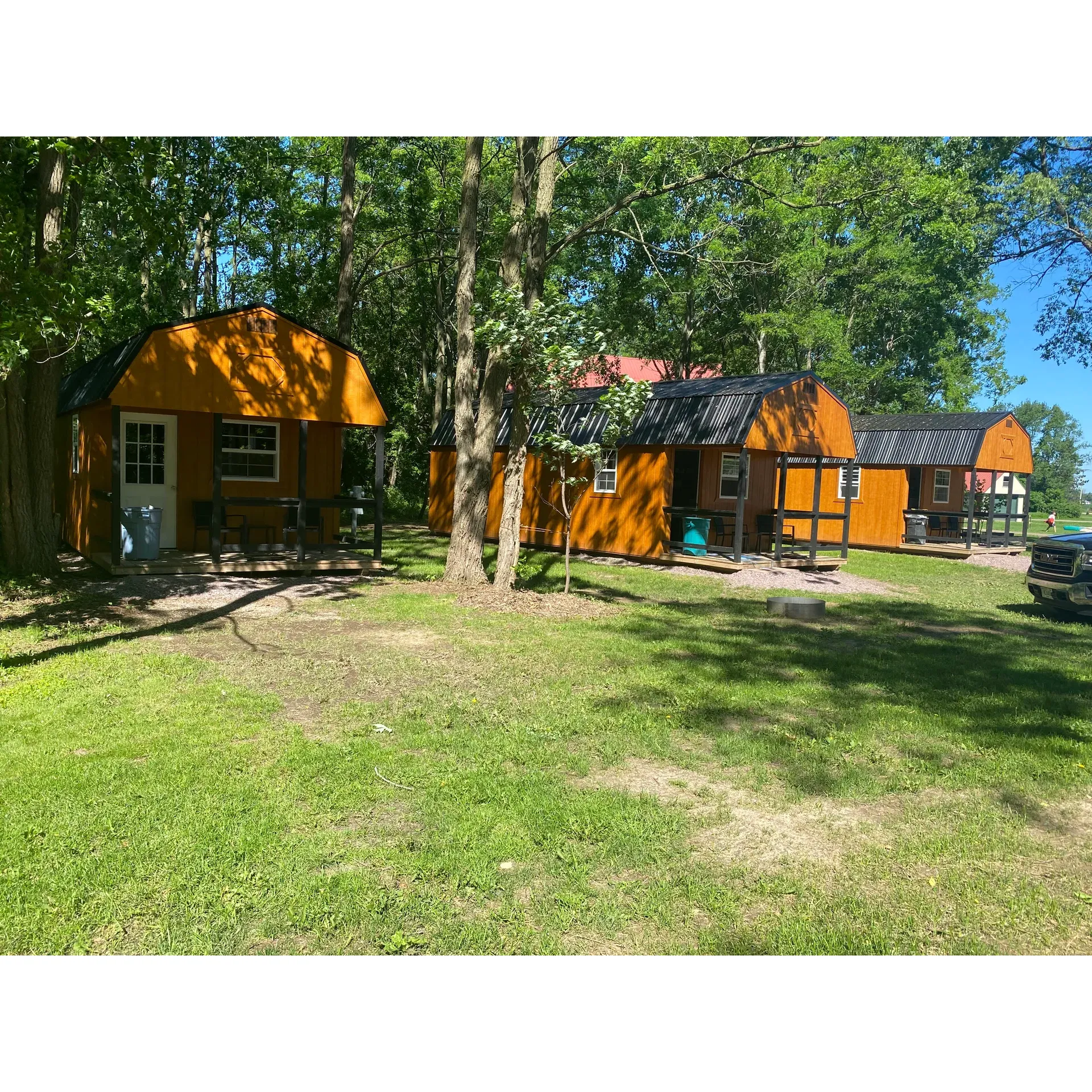 Guests can revel in the lush surroundings at their campsite, where they can gather around fire pits and enjoy outdoor meals at picnic tables under the tranquility of tree canopies. Leisure time can be spent in the recreational room or by exploring the eclectic items in the on-site gift shop. Furthermore, connectivity is supported by Wi-Fi services, ensuring that guests can keep in touch with the outside world, albeit with a rustic twist.