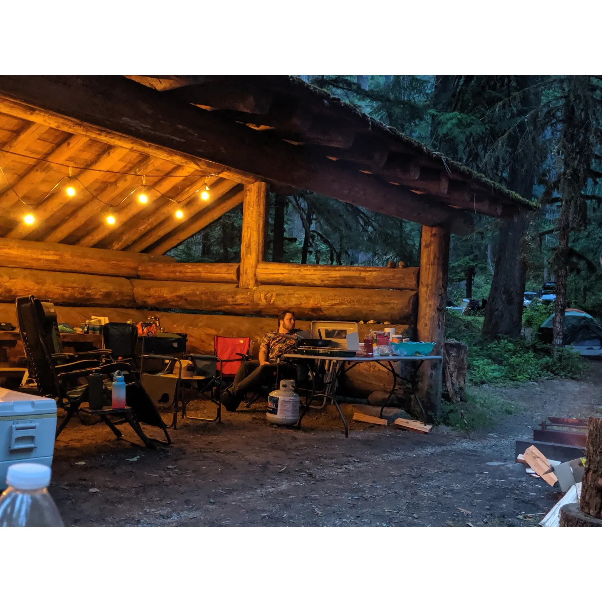 For those seeking a unique camping experience, select sites feature a delightful creek-side location with the soothing backdrop of flowing waters. Site #1 stands out with its impressive old-growth log shelter, multiple picnic tables, and sufficient space for a couple of tents and vehicles, presenting a perfect gathering spot for families and friends.