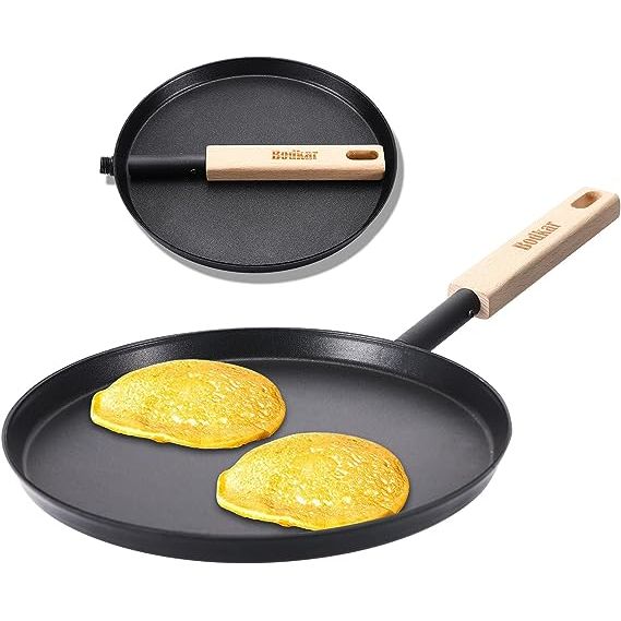 9-inch Flat Crepe Pan, Lightweight Grill Pan with Wooden Handle for Camping Indoor Outdoor Cooking - Revolutionary Cookware